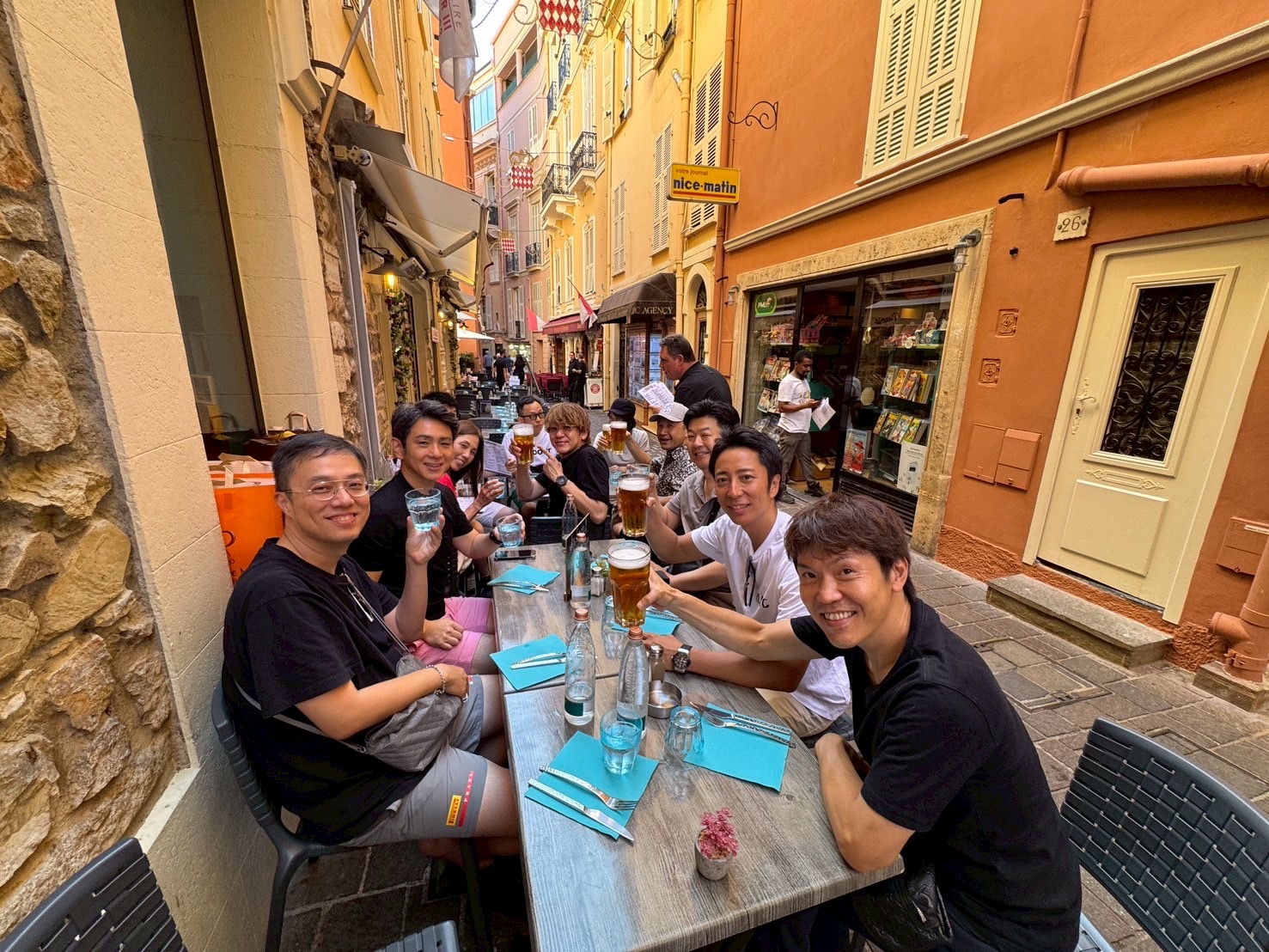 ニースの街並みを眺めながら、道行く人々の姿を眺めつつ味わう料理は格別で、仲間と共に本当に豊かな時間を過ごすことができました。